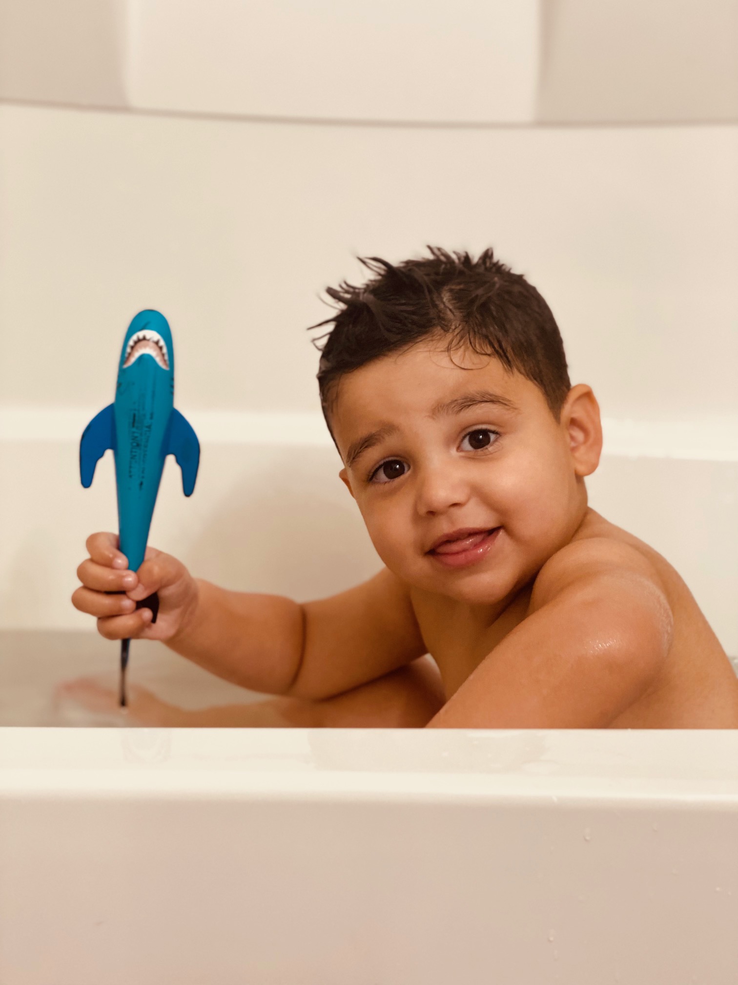 Alan es hora de bañarse, Alan termina de jugar que tienes que ir al baño, Alan estas muy sucio, Alan, Alan…. Pero Alan es pequeño, ninguna de esas razones que yo le daba para ir al baño eran más interesantes que su juego divertido así que lo único que hice fue cambiar la frase. «ALAN VAMOS A BUSCAR ALGUN JUGUETE SUCIO PARA BAÑARLO» Ahí ocurrió la magia. Mi hijo se levanto y muy animado me trajo un carro y me dijo -sucio- y contento entró al agua, jugo con su carro y lo lleno de jabón. Ahora cada día el baña un juguete diferente, hasta a echado a perder uno que otro que no se podía mojar, pero bueno, la felicidad nunca es completa.